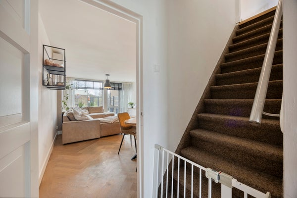 Entree/hal met toegang tot de woonkamer, het toilet en een vaste trapopgang naar de eerste verdieping.