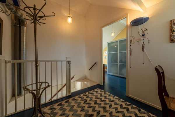 Op de overloop is voldoende ruimte voor een bureau of knusse werkplek.