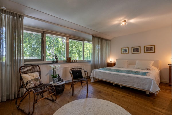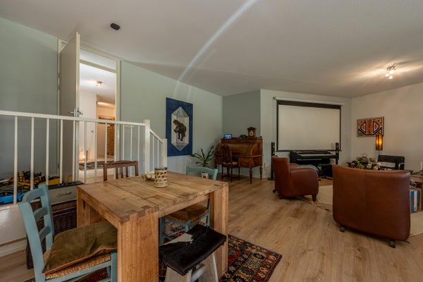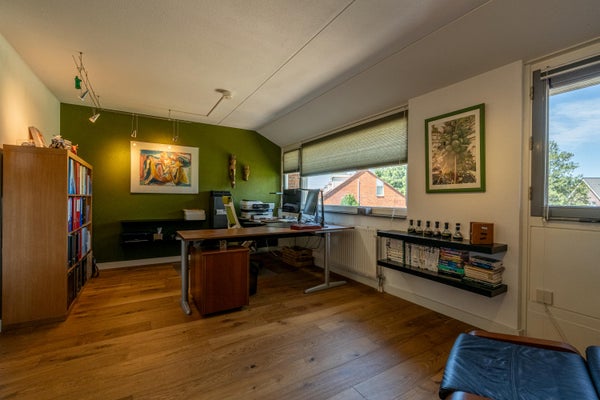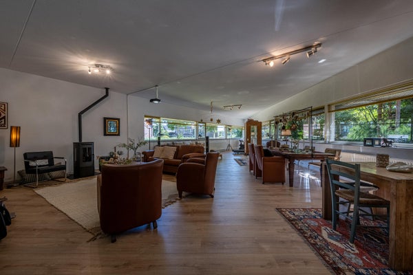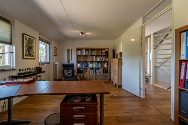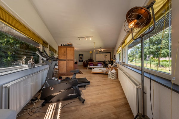 Grenzend aan de hal bevindt zich nog een tweede ruimte die je volledig naar eigen wens kunt invullen. Thuiswerken? Speelruimte voor de kinderen? Slaapkamer op de begane grond of juist een sportruimte? Het kan allemaal! De ruimte is licht dankzij de vele ramen en beschikt over een aansluiting voor een pelletkachel.