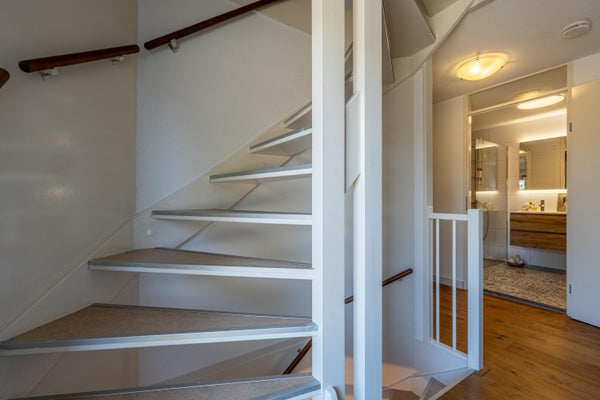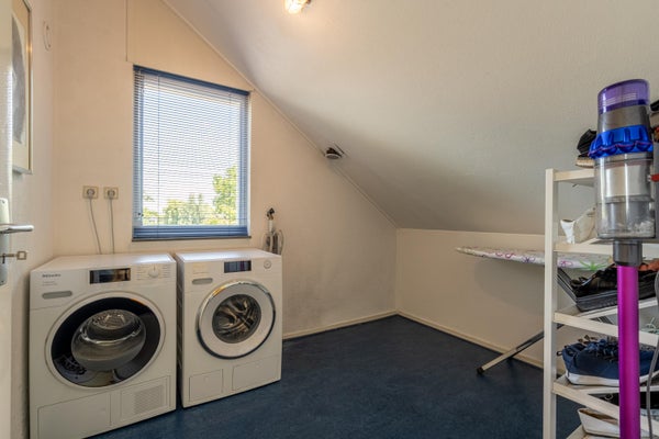 Verder is er een aparte wasruimte met plek voor de wasmachine en droger. Achter de knieschotten op de overloop bevindt zich extra bergruimte, evenals de unit voor de mechanische ventilatie.