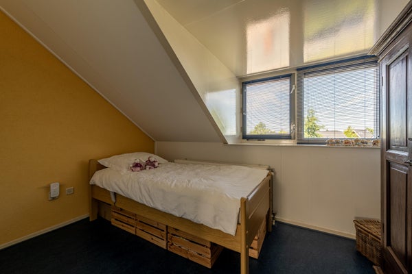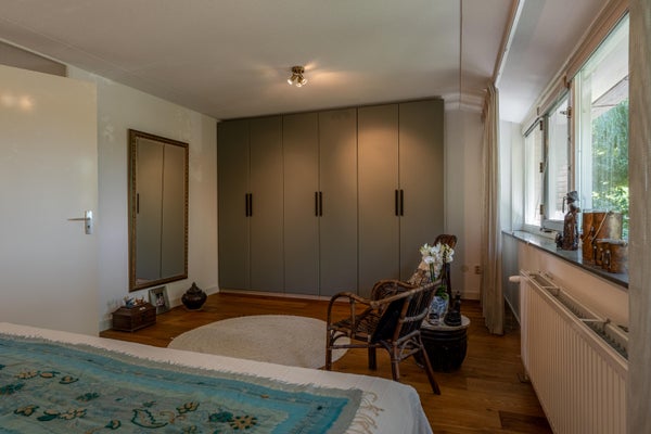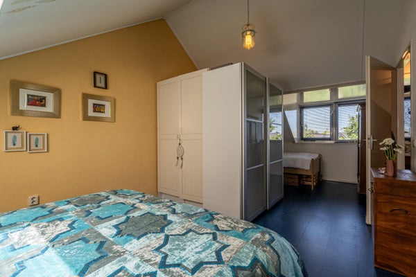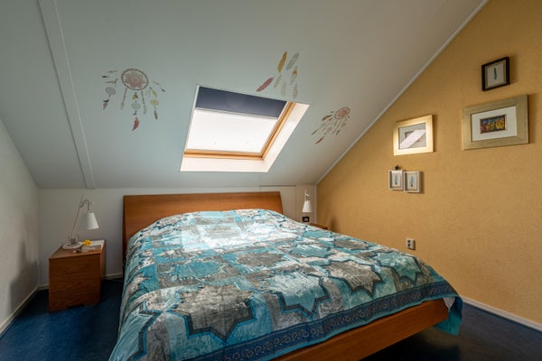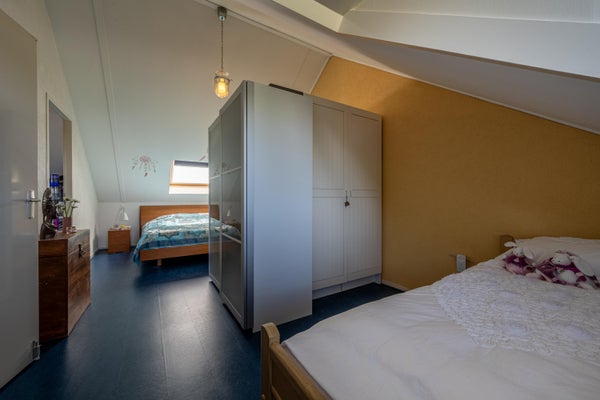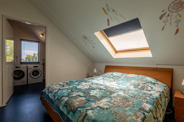 De derde slaapkamer is verrassend ruim en door de brede dakkapel aan de achterzijde én het extra dakraam heerlijk licht. Dankzij de rechte wanden is de kamer praktisch in te delen, bijvoorbeeld als slaapkamer, hobbyruimte of thuiswerkplek.