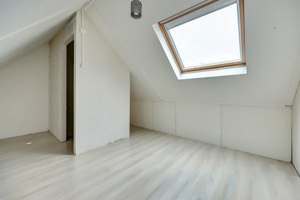 Op de tweede verdieping bevindt zich de vierde slaapkamer met dakraam en volop bergruimte achter de knieschotten.
