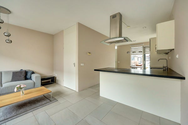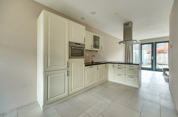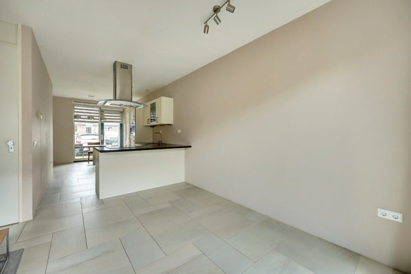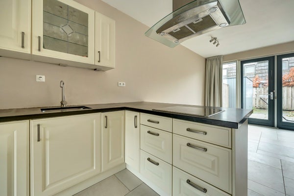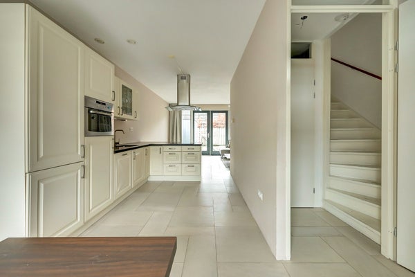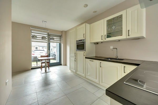 Via de entree/hal met meterkast betreedt u de woning. Aan de voorzijde bevindt zich de sfeervolle eetkamer met een deur naar de veranda. De centraal gelegen keuken in L-opstelling is voorzien van diverse inbouwapparatuur en vormt het hart van de living.