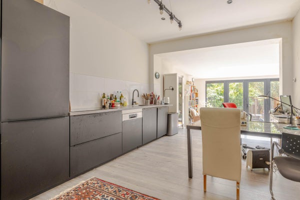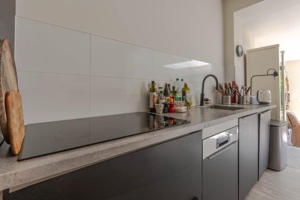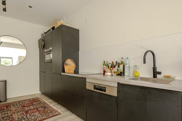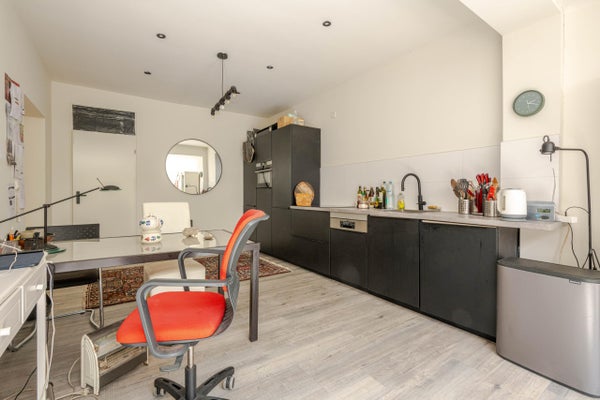 Deze royale benedenwoning met moderne aanbouw is ideaal voor wie op zoek is naar meer ruimte. De woning heeft een eigen entree en een hal die toegang biedt tot de verschillende vertrekken. De twee slaapkamers zijn voorzien van PVC-vloeren en strakke afwerkingen. De moderne badkamer is geheel betegeld en heeft een inloopdouche. In de ruime woonkeuken bevindt zich een matzwarte inbouwkeuken met inbouwapparatuur. Een afstapje leidt naar de lichte woonkamer in de aanbouw, die openslaande deuren naar de zonnige achtertuin heeft. De tuin, gelegen op het zuiden, is voorzien van bestrating en een houten vlonderterras. Gelokaliseerd nabij het Zuidplein, met voorzieningen en recreatiegebieden op loopafstand, biedt deze woning een ideale combinatie van ruimte en comfort.