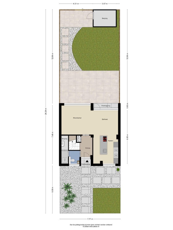 - Aanwezig (90 m², gelegen op het zuidoosten)