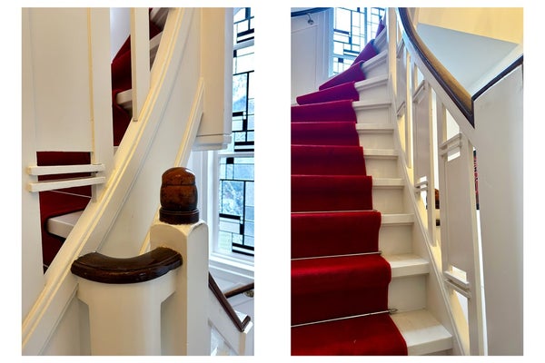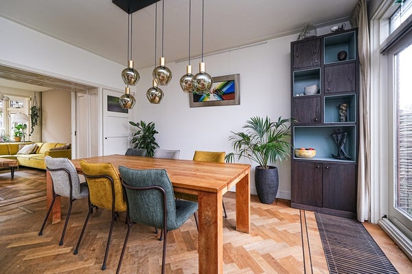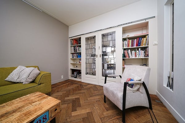 Bij binnenkomst valt meteen de prettige lichtinval en de rijke jaren ’30 uitstraling op. Hoge plafonds, glas-in-lood bovenramen en een warme, huiselijke sfeer kenmerken deze verdieping. De visgraat gelegde en deels nog originele parketvloer met zwarte bies en de strak gestuukte wanden maken het geheel compleet.