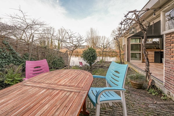 De achtertuin is een heerlijke plek: ruim, groen en direct gelegen aan het water. Er zijn meerdere zitplekken om optimaal van het buitenleven te genieten. Door