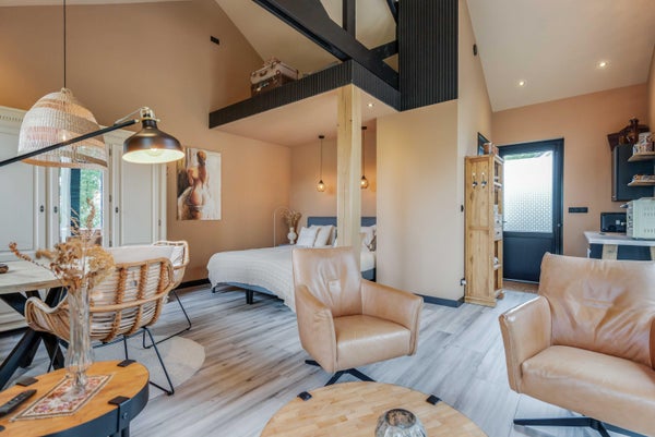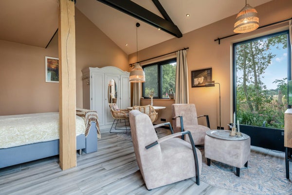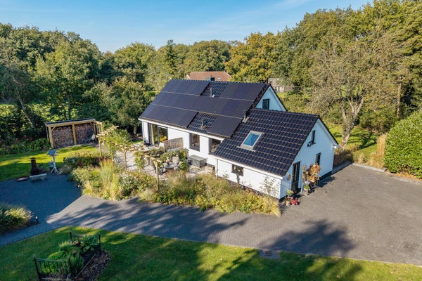 Op een unieke locatie aan de rand van de Anserdennen en het Dwingelderveld, net buiten Ruinen, bevindt zich deze vrijstaande woning met energielabel A++. De recent gerenoveerde woning van 1969 ligt op een royaal perceel van 9.854 m² en beschikt over een duurzaam gastenverblijf. Dit gastenverblijf, ideaal voor bezoekers of als werkruimte, omvat twee appartementen met eigen ingang en parkeerplaats. De woning zelf heeft een woonoppervlak van 210 m², met een royale woonkamer van 36 m², een luxe badkamer en een maatwerkkeuken. De tuin is rondom verzorgd, met een boomgaard en een moestuin. Naast de woning is er een vrijstaande schuur met atelier. Deze unieke plek biedt volop privacy en ruimte voor hobby's, dieren en gasten.