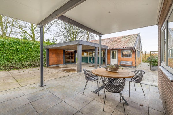 Dit goed onderhouden eengezinswoning, gebouwd in 1955, ligt op een unieke locatie nabij de IJsselmeerdijk, op een perceel van circa 1.054 m². De woning heeft een woonoppervlakte van ongeveer 121 m² en beschikt over vier kamers, waaronder drie slaapkamers. Op de begane grond vindt u een ruime woonkamer met een eiken planken vloer en houthaard, die via openslaande deuren toegang biedt tot een overdekt terras. De open keuken is voorzien van inbouwapparatuur. De eerste verdieping heeft een badkamer met ligbad en douche, evenals een dakkapel aan zowel de voor- als achterzijde. De tuin omringt de woning en biedt een oprit, gazon en een deels overdekt terras. Bovendien is er een vrijstaande houten garage en dubbele carport aanwezig.