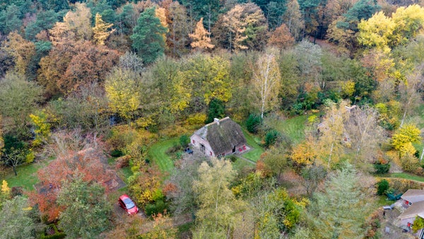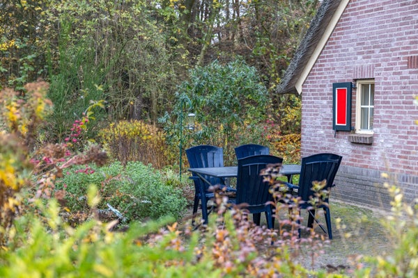 Als we aan komen rijden bij het park schijnt het zonnetje volop door de herfstige bladeren. Een rijk pallet aan kleuren stemt ons vrolijk. Bij de slagboom houden we halt . Na verificatie kunnen we door en rijden stapvoets over het ruim opgezette park. Onze woning bevindt zich in het rechter gedeelte. We parkeren op de eigen, dubbele, oprit voor de woning. De gasten mogen die aan het begin van het park in de berm zetten. Als eerste raak je onder de indruk van de plek. Voordat je er erg in hebt ben je neergeploft op het terras. Je ruikt het vers gemaaide gras, de boslucht en je hoort een kakafonie aan vogelgeluiden. Eigenlijk wil je nu al niet meer weg....