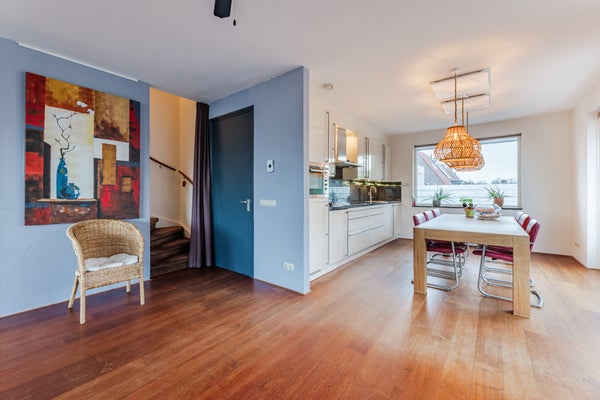 Stel je voor: Wakker worden met uitzicht op de karakteristieke molen Agneta, met de zon die de woning verwarmt en het centrum van Ruurlo op loopafstand. Dit energiezuinige appartement, verdeeld over meerdere woonlagen, voelt gelijk als thuis. De sfeervolle woonkamer, met luxe open keuken, biedt hoogwaardige inbouwapparatuur, waaronder een Quooker en een nieuwe vaatwasser. Vanuit de woonkamer en keuken stap je op het royale dakterras van 33 m². Op de tweede verdieping bevinden zich twee ruime slaapkamers en een complete badkamer met ligbad. Bovenaan is een zolderkamer, perfect voor verschillende doeleinden. Tevens is er een privéberging en eigen parkeerplaats. Dit appartement in een kleinschalig complex biedt rust, ruimte en comfort, ideaal voor starters en gezinnen.