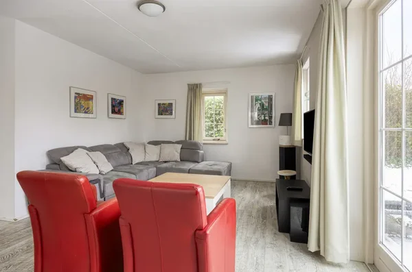 Buiten is er een overkapping voor beschut buitenleven en een ruime berging ideaal voor fietsen of tuinmeubilair. Deze recreatiewoning is uitstekend gelegen nabij natuurgebieden en voorzieningen, wat het aantrekkelijk maakt voor eigen gebruik of verhuur.