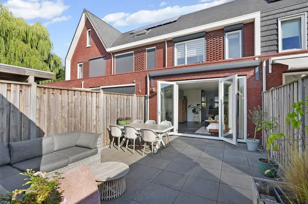 De heerlijke achtertuin is circa 20 meter diep en biedt volop zon gedurende de dag. Dankzij de vrije achterom en het houten tuinhuis is de tuin bovendien praktisch in gebruik. Aan de voorzijde beschikt de woning over een royale oprit met parkeergelegenheid voor meerdere auto's op eigen terrein.