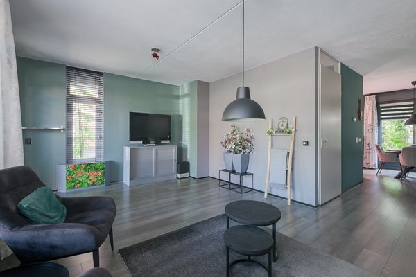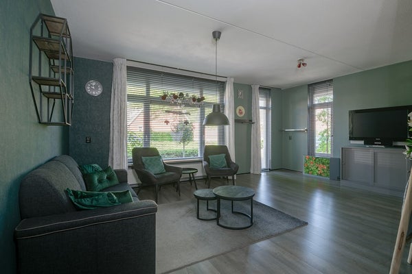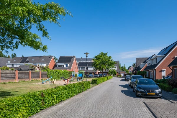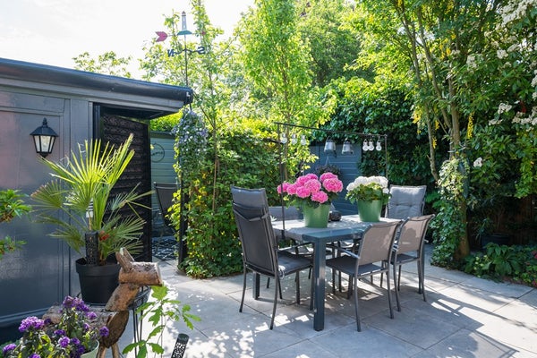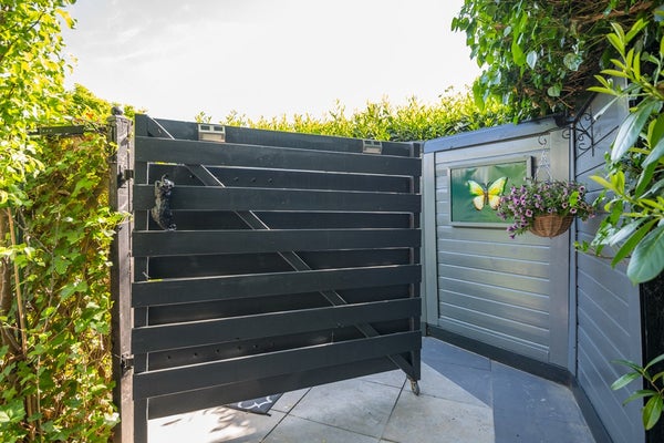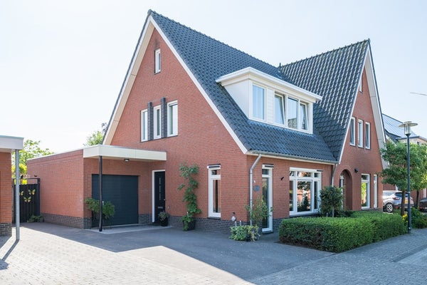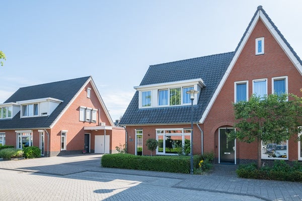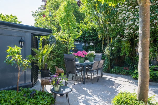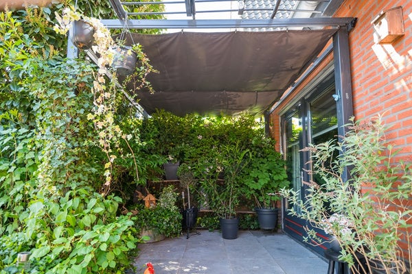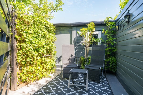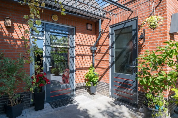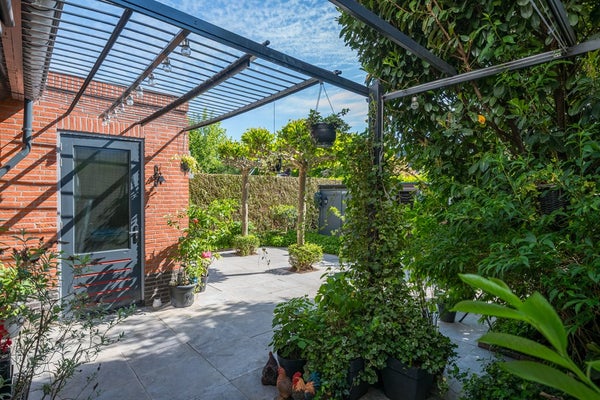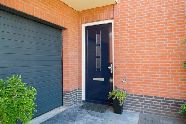 De voortuin is smaakvol aangelegd, terwijl de achtertuin een zonnige oase vormt die naadloos aansluit op de woonkeuken.