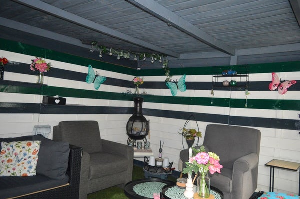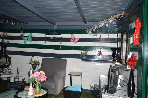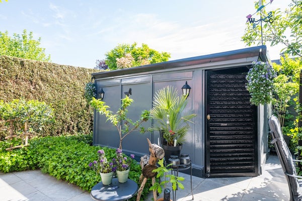 Hier vind je ook een houten tuinhuisje, ideaal voor hobbyisten of extra opslagruimte.