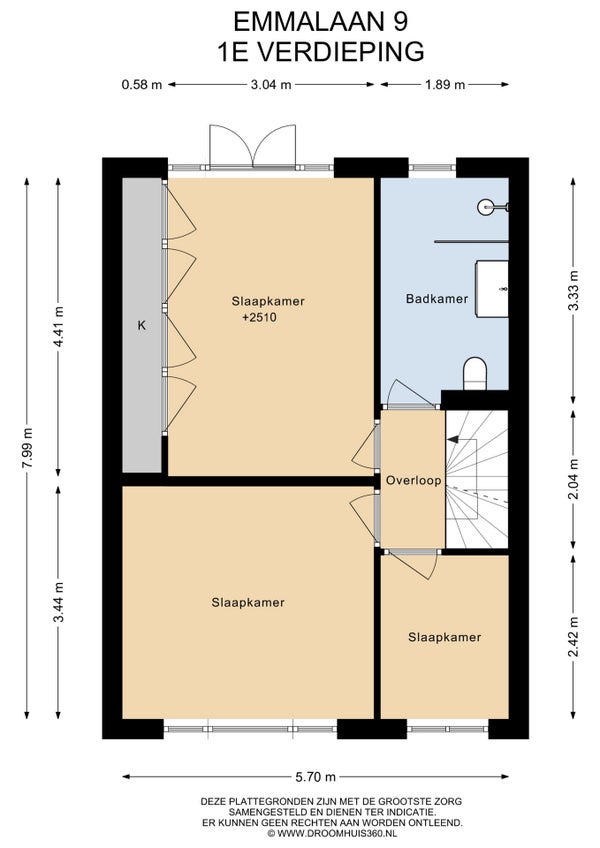 - De tussenwoning heeft een woonoppervlakte van 134 m² en beschikt over 6 kamers, waarvan 5 slaapkamers;
