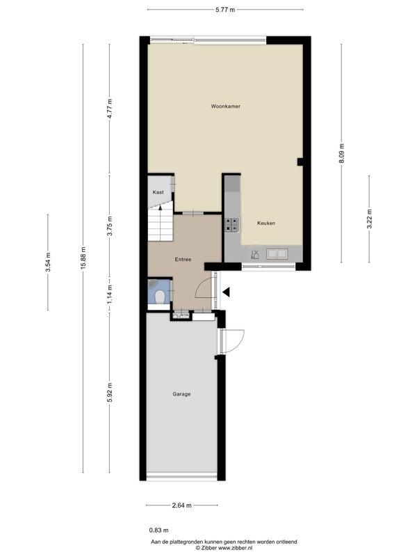 Aanwezig (60 m², gelegen op het zuidoosten)