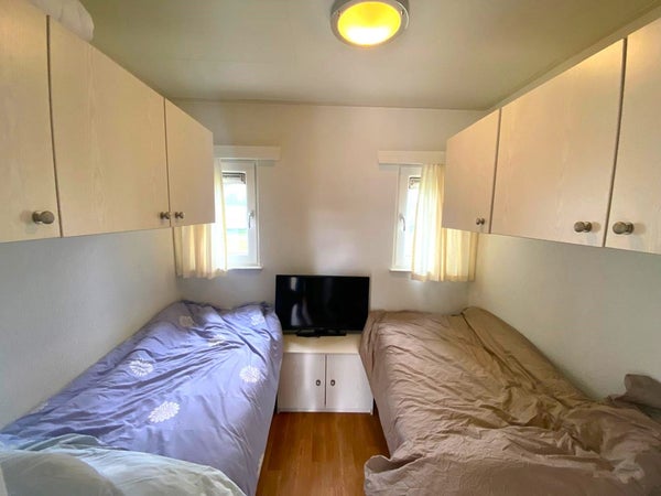 Slaapkamer 1 beschikt over een comfortabel tweepersoonsbed en voldoende opbergruimte. Slaapkamer 2 heeft twee eenpersoonsbedden, twee ramen en extra opbergruimte. Slaapkamer 3 biedt een stapelbed en centrale verwarming voor een goede nachtrust.