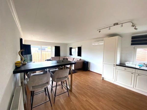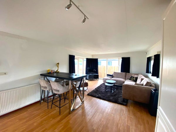 De ruime woonkamer is voorzien van een grote hoekbank waar u heerlijk kunt ontspannen na een lange dag. De eettafel biedt plaats aan 4 personen, ideaal voor gezellige diners met familie en vrienden. Het tv-meubel met led-tv zorgt voor vermaak en de airconditioning houdt de ruimte aangenaam koel tijdens warme zomerdagen.