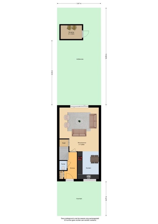 - Aanwezig (71 m², gelegen op het noordwesten)