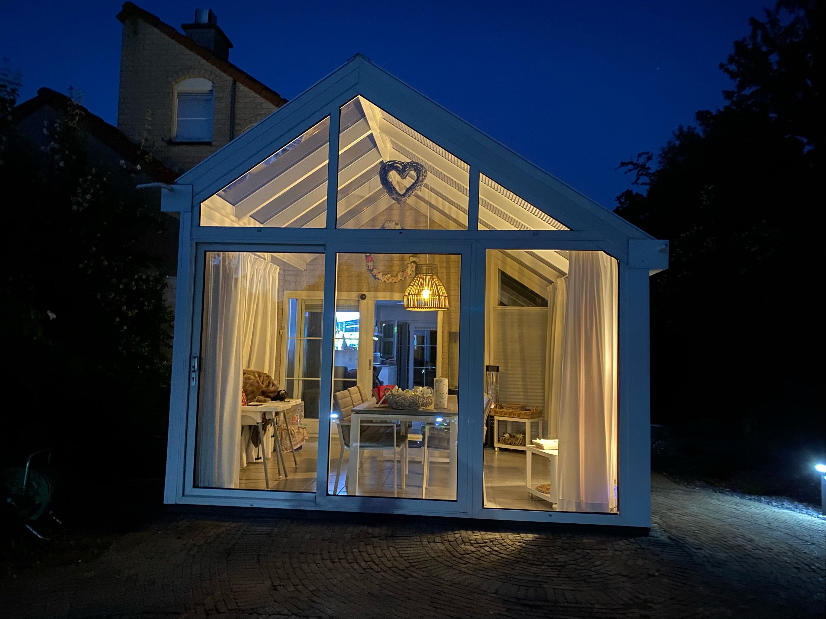 - Hoekkeuken met een koelkast met vriezer, 4-pits inductiekookplaat, vaatwasser en afzuigkap. Aan de eettafel kun je gezellig samen eten. Ook hier kun je middels de 2e schuifpui direct de tuin inlopen.