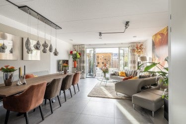 - De tussenwoning heeft een woonoppervlakte van 134 m² en beschikt over 5 kamers;