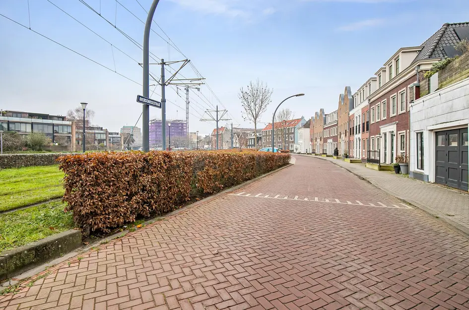 Dit moderne herenhuis combineert historische charme met hedendaags gemak. Gelegen aan de rustige Overschiesestraat biedt het uitzicht op de Schiedamse Schie en ligt het op loopafstand van Station Schiedam Centrum en het winkelcentrum. De indeling begint op de begane grond met een ruime hal, moderne keuken met massief eiken afwerking en opp. werkruimte, een uitbouw in de woonkamer en toegang tot de achtertuin met overkapping en houten berging. Op de eerste verdieping zijn drie slaapkamers en een luxueuze badkamer. De tweede verdieping heeft twee slaapkamers met speelse indelingen en een aparte wasruimte. Verder is het herenhuis volledig geïsoleerd, beschikt over een energielabel A, en heeft onder meer 11 zonnepanelen. Dit 6-kamer huis op een toplocatie is ideaal voor comfortabel gezinsleven.