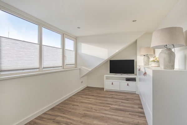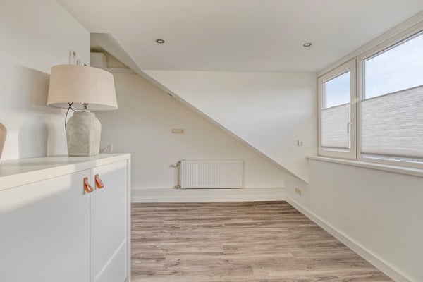 Via een vaste trap bereikt u de tweede verdieping, een volwaardige en verrassend lichte verdieping. De ruime overloop is voorzien van een dakkapel én airconditioning, wat niet alleen zorgt voor prettig daglicht maar ook voor extra comfort. Daarnaast biedt deze ruimte uitstekende mogelijkheden voor het realiseren van een extra slaap-, werk- of hobbykamer. Vanuit de overloop heeft u toegang tot de derde slaapkamer en de wasruimte. De slaapkamer beschikt over een dakraam en praktische knieschotten, wat zorgt voor extra bergruimte. In de wasruimte bevinden zich de aansluitingen voor de wasmachine en de opstelplaats van de cv-installatie (Nefit, 2009).