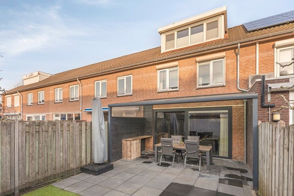 De achtertuin is onderhoudsvriendelijk aangelegd, grotendeels bestraat en voorzien van kunstgras. Door de gunstige zuidwestelijke ligging kan men hier de gehele dag van de zon genieten. Direct aan de woning bevindt zich een overkapping, die het mogelijk maakt om ook bij minder goed weer comfortabel buiten te verblijven.