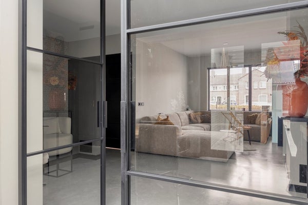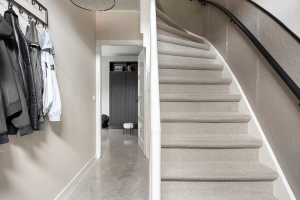 Via de stijlvolle entree betreedt u deze luxe woning. De hal is voorzien van de meterkast en trapopgang en hoogwaardig afgewerkt met strak gestucte wanden en plafonds. De gevlinderde betonvloer, uitgerust met vloerverwarming en -koeling, loopt over de gehele begane grond en vormt een rustige, luxe basis.