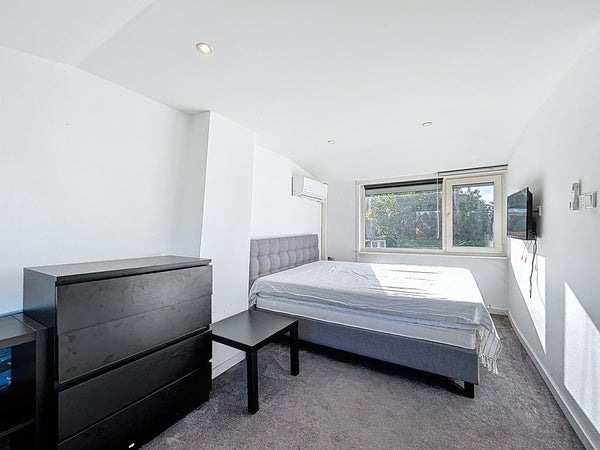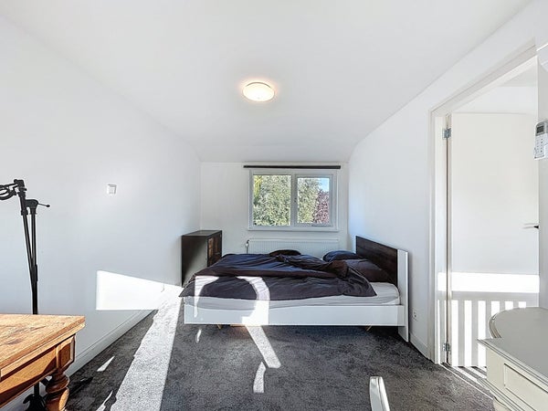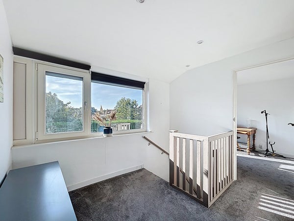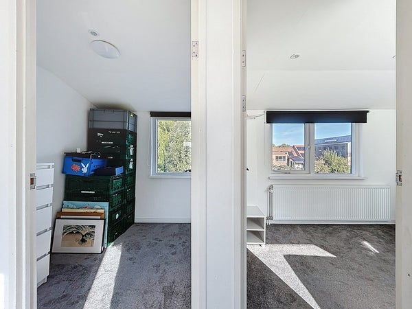 De overloop is ruim en geeft toegang tot drie slaapkamers. Twee daarvan beschikken over airconditioning en één kamer biedt toegang tot het platte dak, wat mogelijkheden geeft voor dakterras of extra buitenruimte. Alle kamers zijn ruim opgezet en ideaal in te delen naar eigen wens, bijvoorbeeld als kinderkamer, logeerkamer of thuiskantoor.