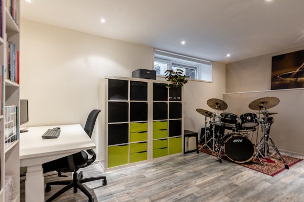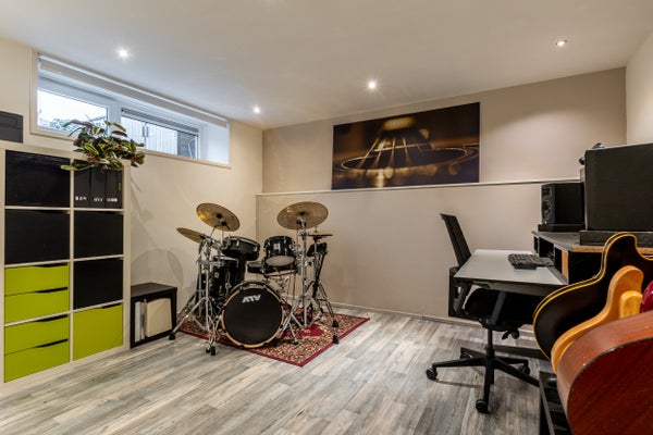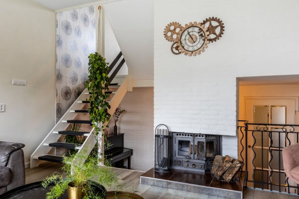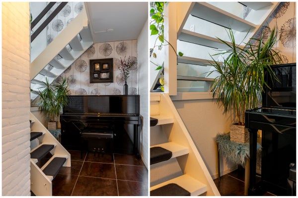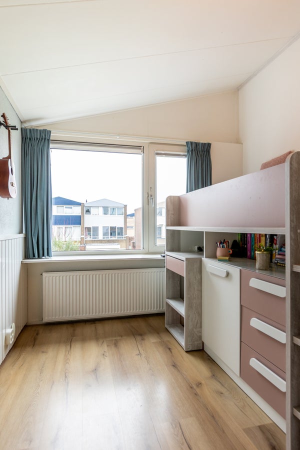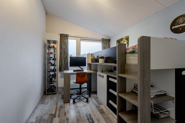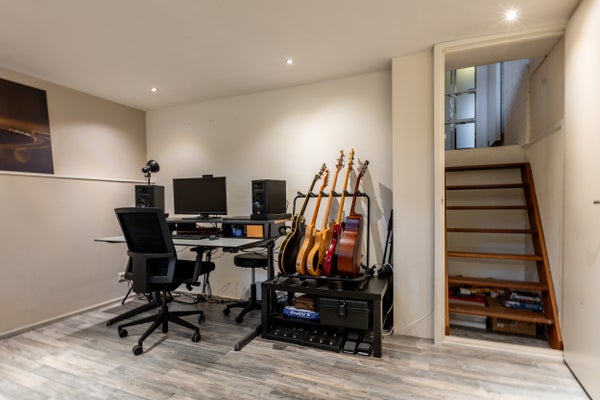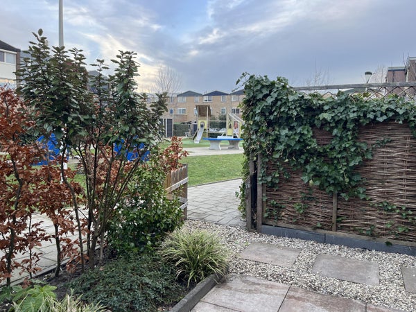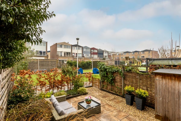Deze ruime eengezinswoning heeft een unieke split-level indeling met zes woonlagen, verbonden door korte trappen. Het souterrain, met ramen op straatniveau, is perfect als extra kamer. De begane grond biedt een praktische indeling met hal, modern toilet en een aangepaste ruimte voor werk of hobby. De gezellige woonkamer op de eerste verdieping heeft grote ramen en een haard, terwijl de moderne woonkeuken met toegang tot het dakterras ideaal is voor diners. Op de slaapverdieping vind je twee slaapkamers en de ouderslaapkamer met en-suite badkamer. De achtertuin grenst aan een grasveld en speeltuin, waarbij aan de voorzijde parkeergelegenheid voor de deur is. Deze woning is goed geïsoleerd en ligt in een fijne buurt met scholen en winkels nabij.