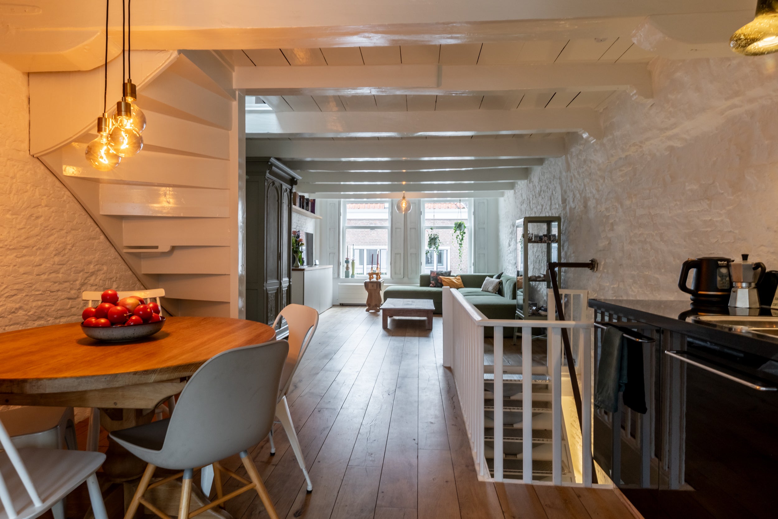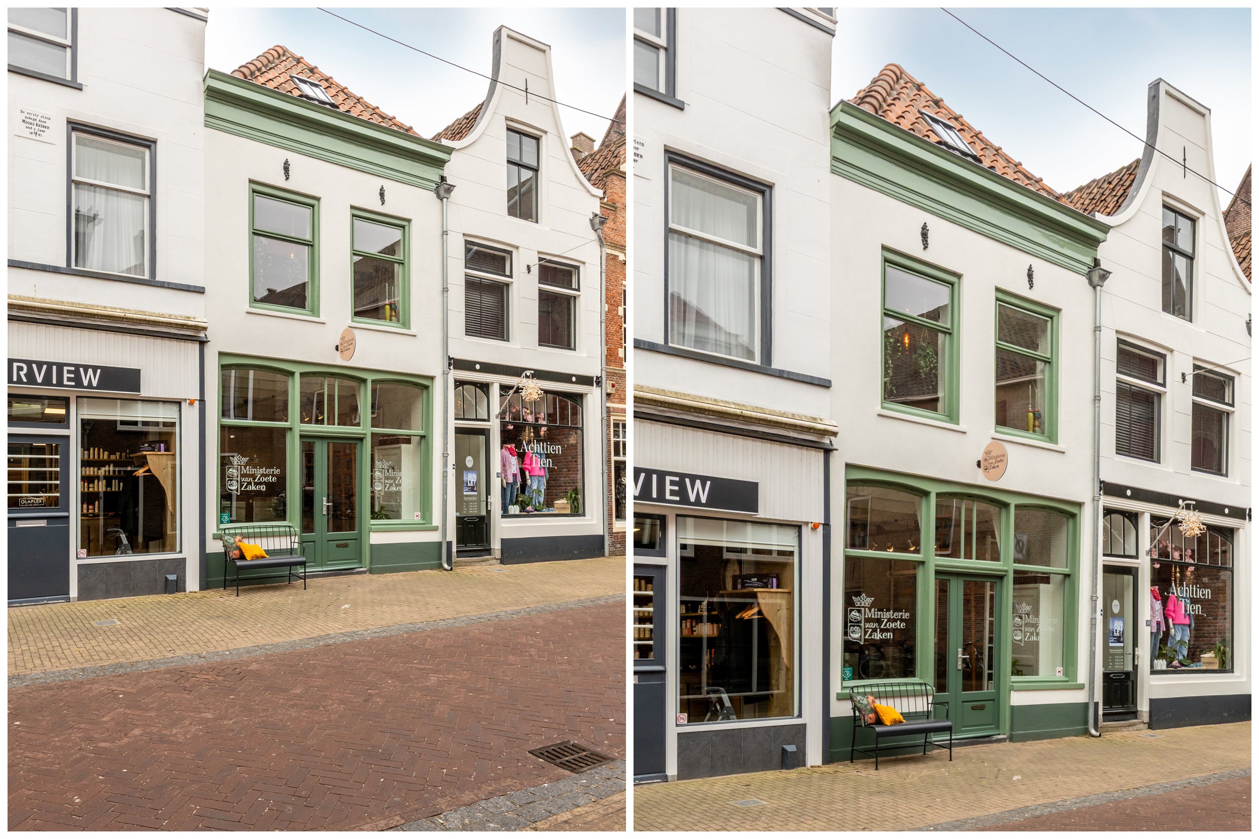 Dit karakteristieke woon- en winkelpand uit 1691, gelegen in de historische winkelstraat van Schoonhoven, biedt een unieke kans om wonen en ondernemen te combineren. De begane grond heeft een winkel- en bakkerijruimte van 54 m², met een moderne badkamer en werkplek. De woonkamer op de eerste verdieping, met authentieke balkenplafond, staat in verbinding met de open keuken en een slaapkamer die leidt naar het zonnige dakterras van 22 m². Op de tweede verdieping bevinden zich twee extra slaapkamers, elk met Velux dakramen. Het pand is recent verbouwd en verduurzaamd, met isolatie en dubbele beglazing. Met 91 m² woonoppervlakte, 5 kamers en een centrale locatie, is dit pand perfect voor wie de bedrijvigheid van de stad wil ervaren.