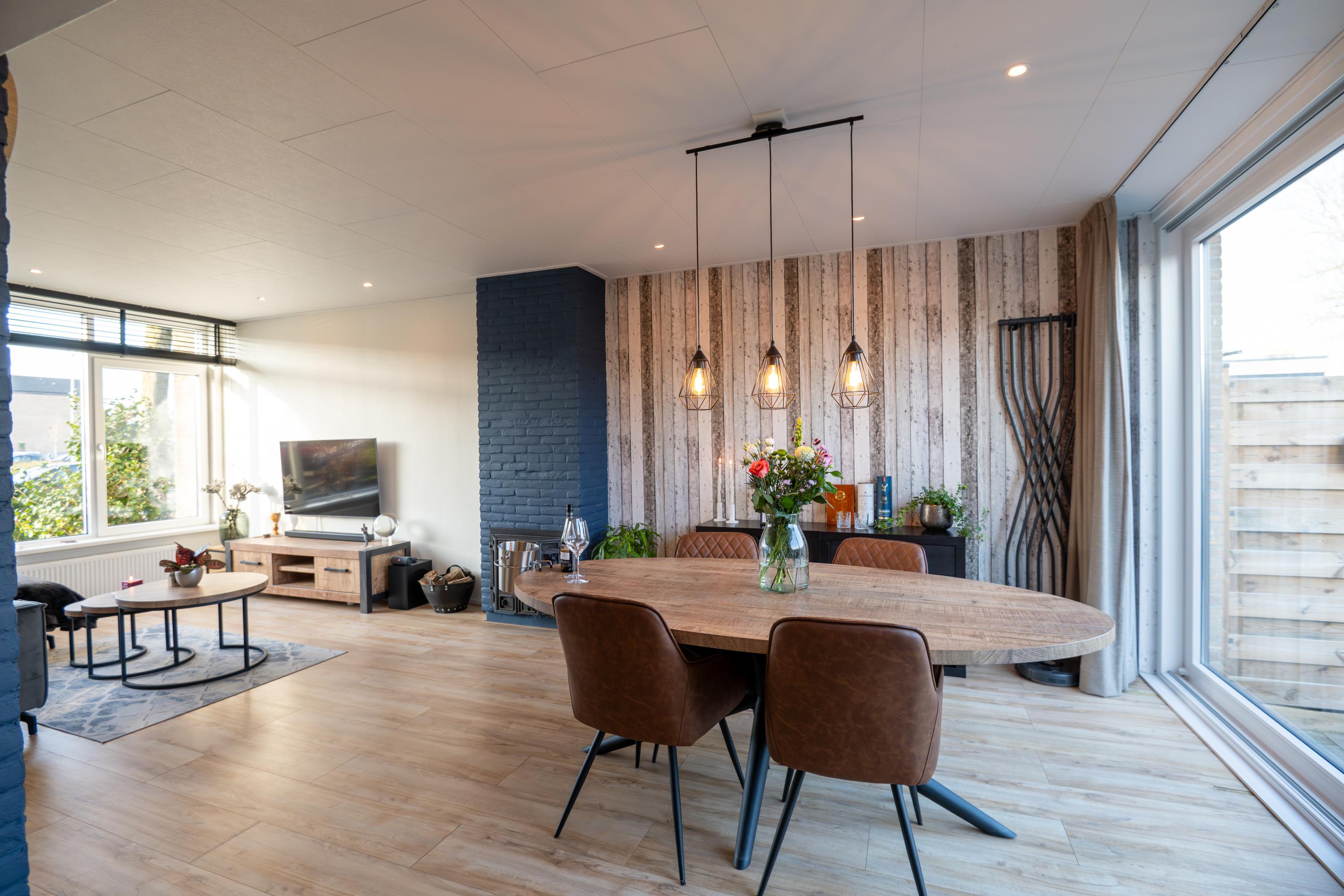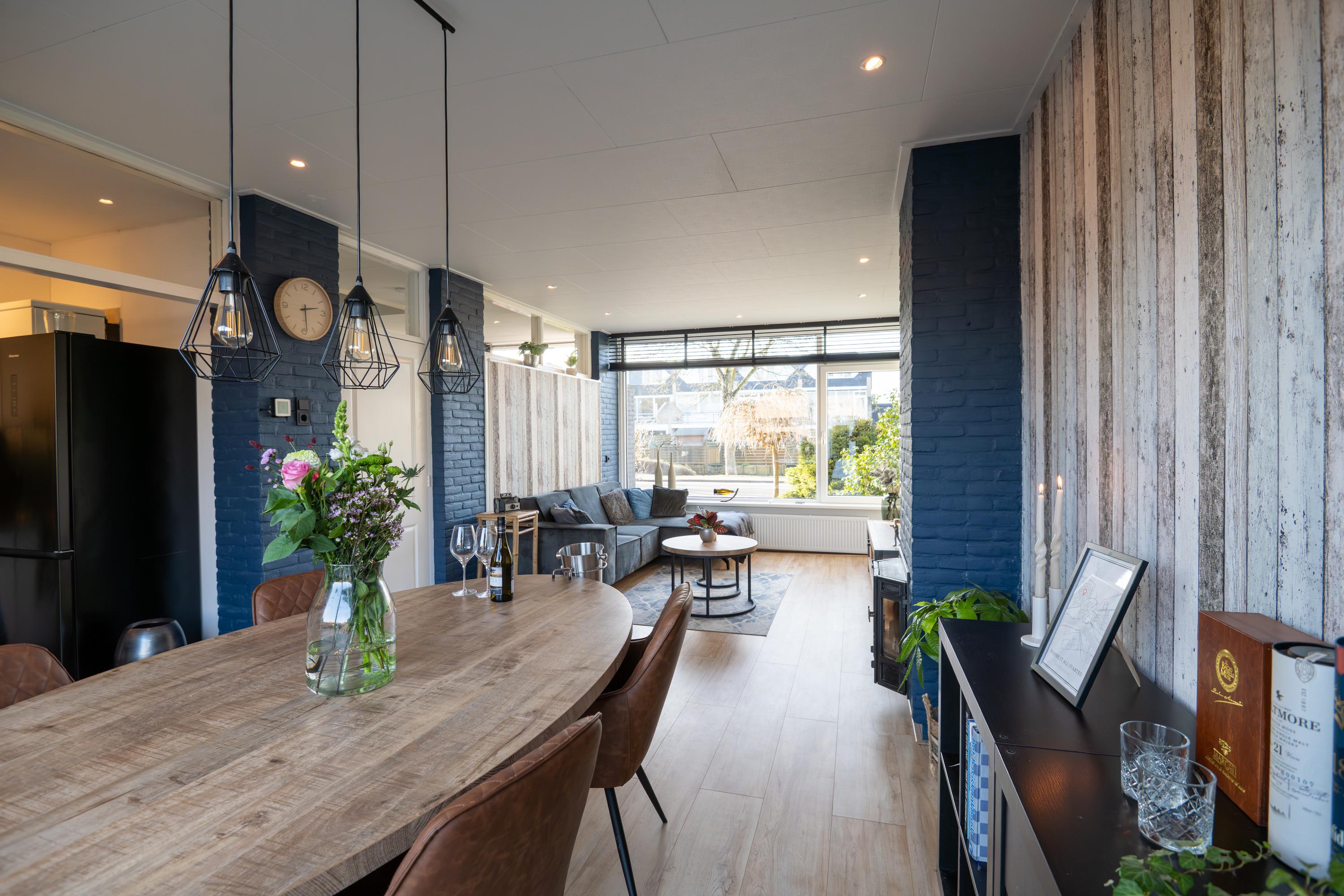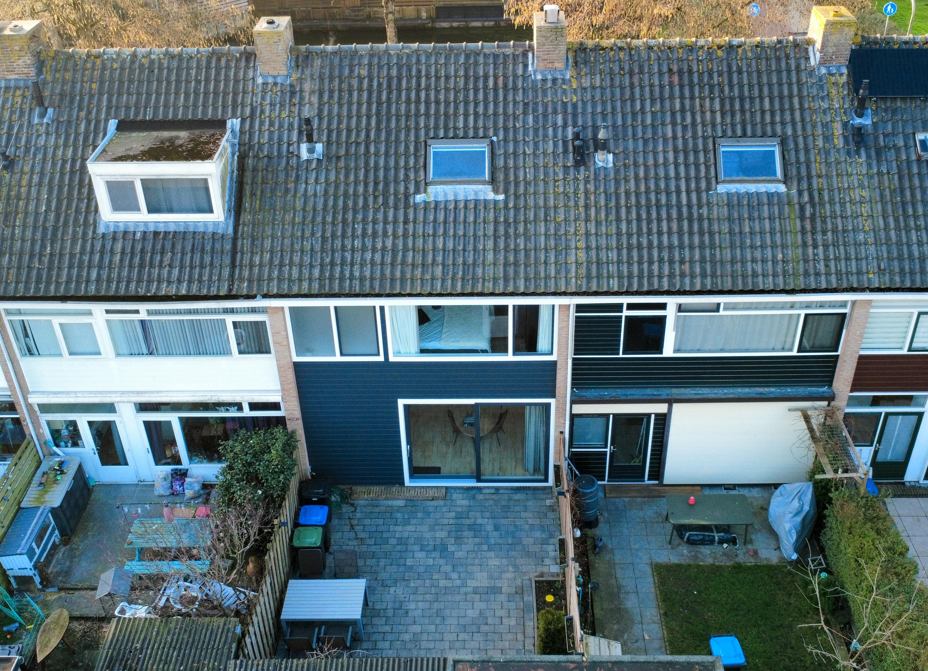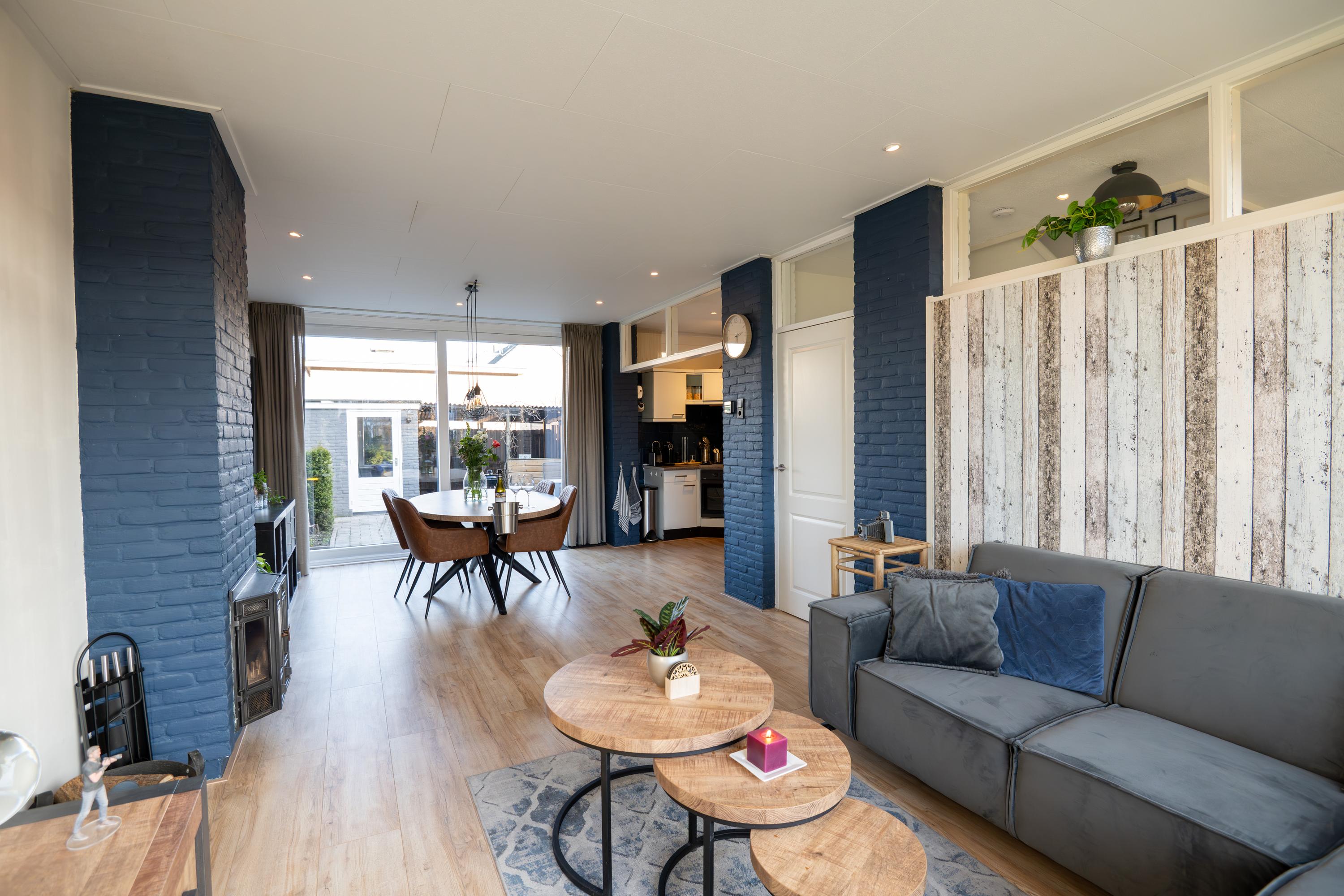 Deze ruime eengezinswoning is modern ingericht en biedt veel leefruimte. De grote schuifpui achterin zorgt voor extra lichtinval en een open verbinding naar de achtertuin. De open keuken heeft een praktische U-opstelling en een sfeervolle open haard tussen de eethoek en zithoek. Op de eerste verdieping is de indeling veranderd; de moderne badkamer met inloopdouche en ligbad is nu groter, en er is een extra toilet en inloopkast gerealiseerd. De woning beschikt over drie slaapkamers en een lichte zolderkamer. In de diepe achtertuin staat een berging met overkapping, en er is vrij uitzicht. Gelegen in een kindvriendelijke wijk met voorzieningen dichtbij, is dit huis perfect voor gezinnen.