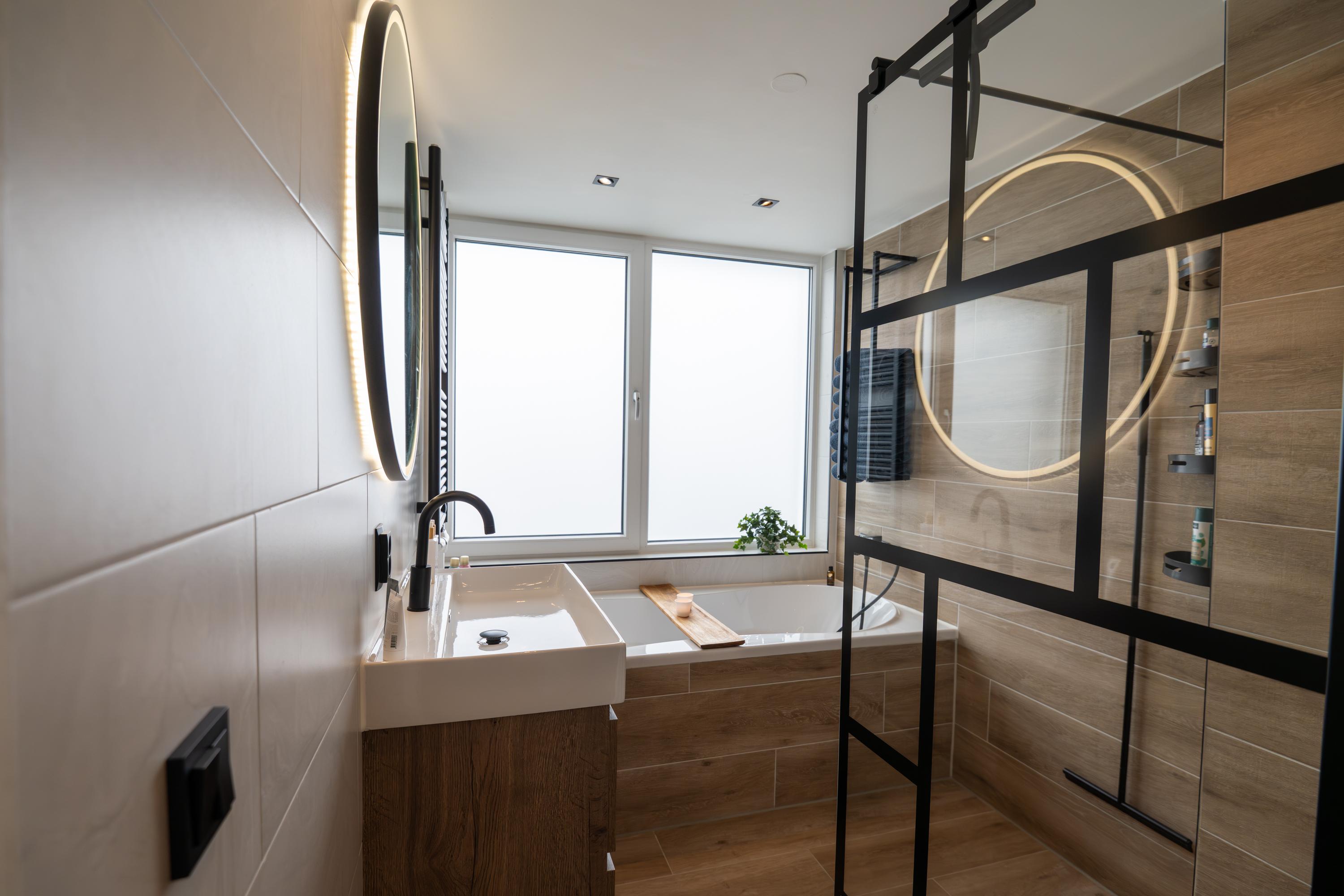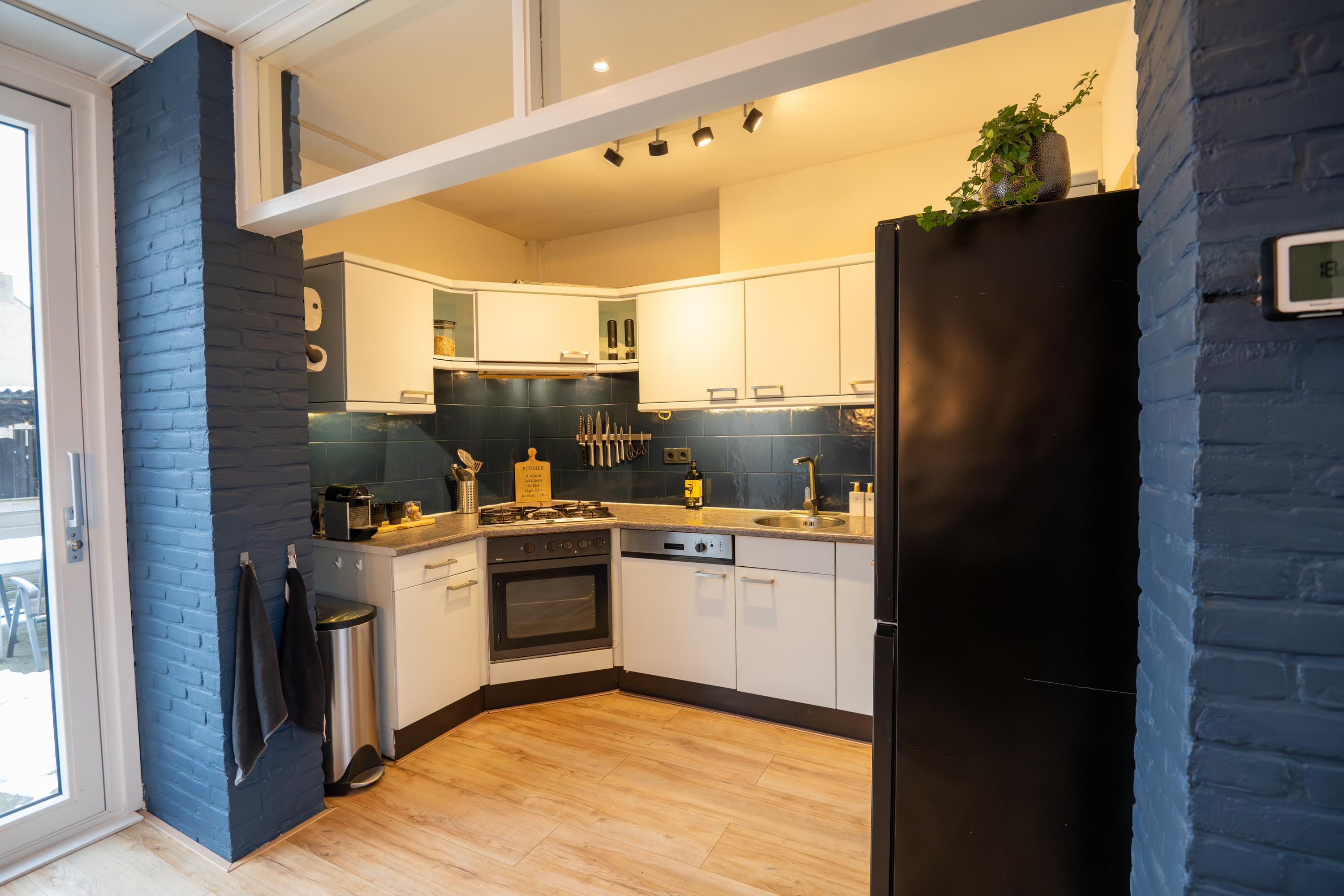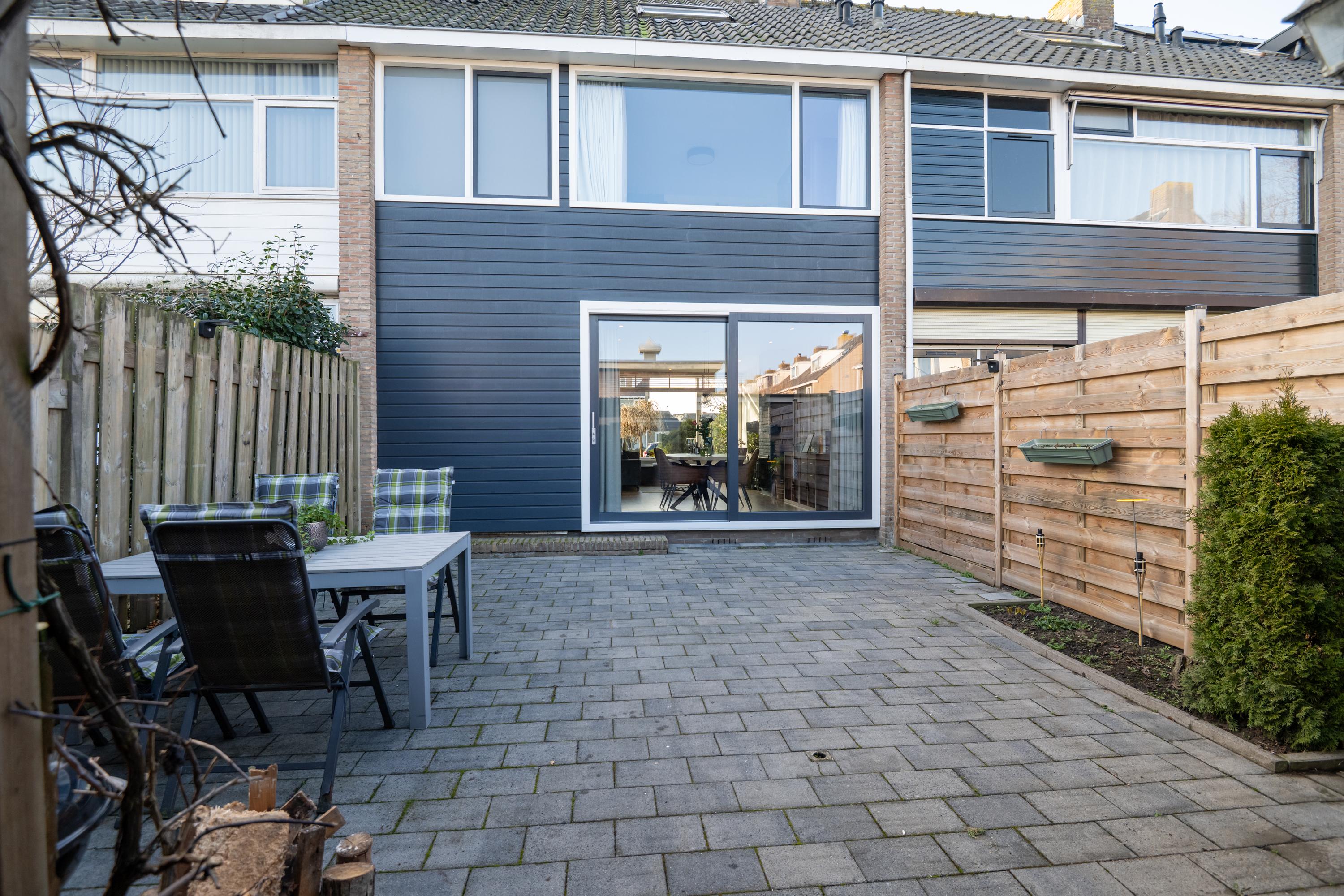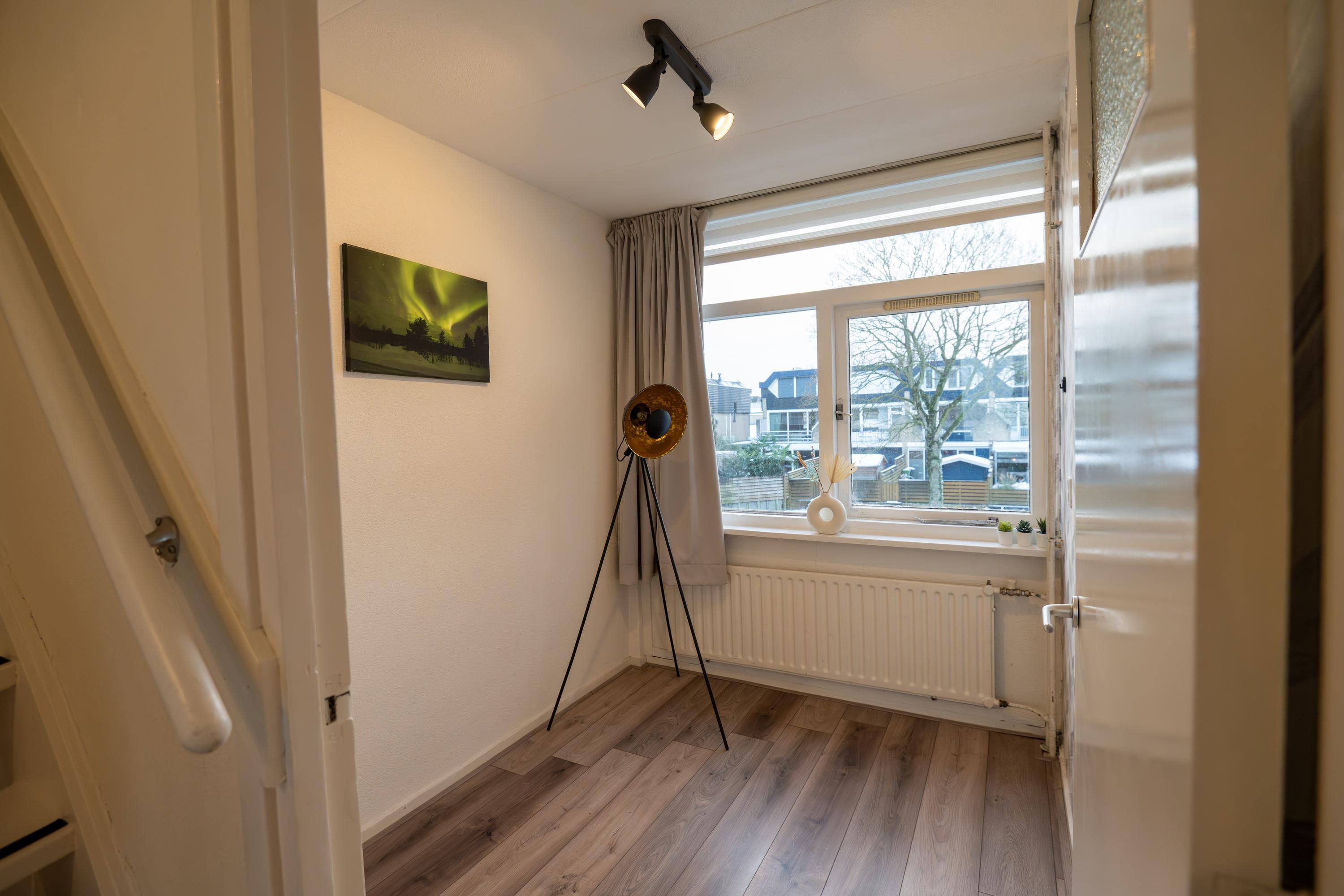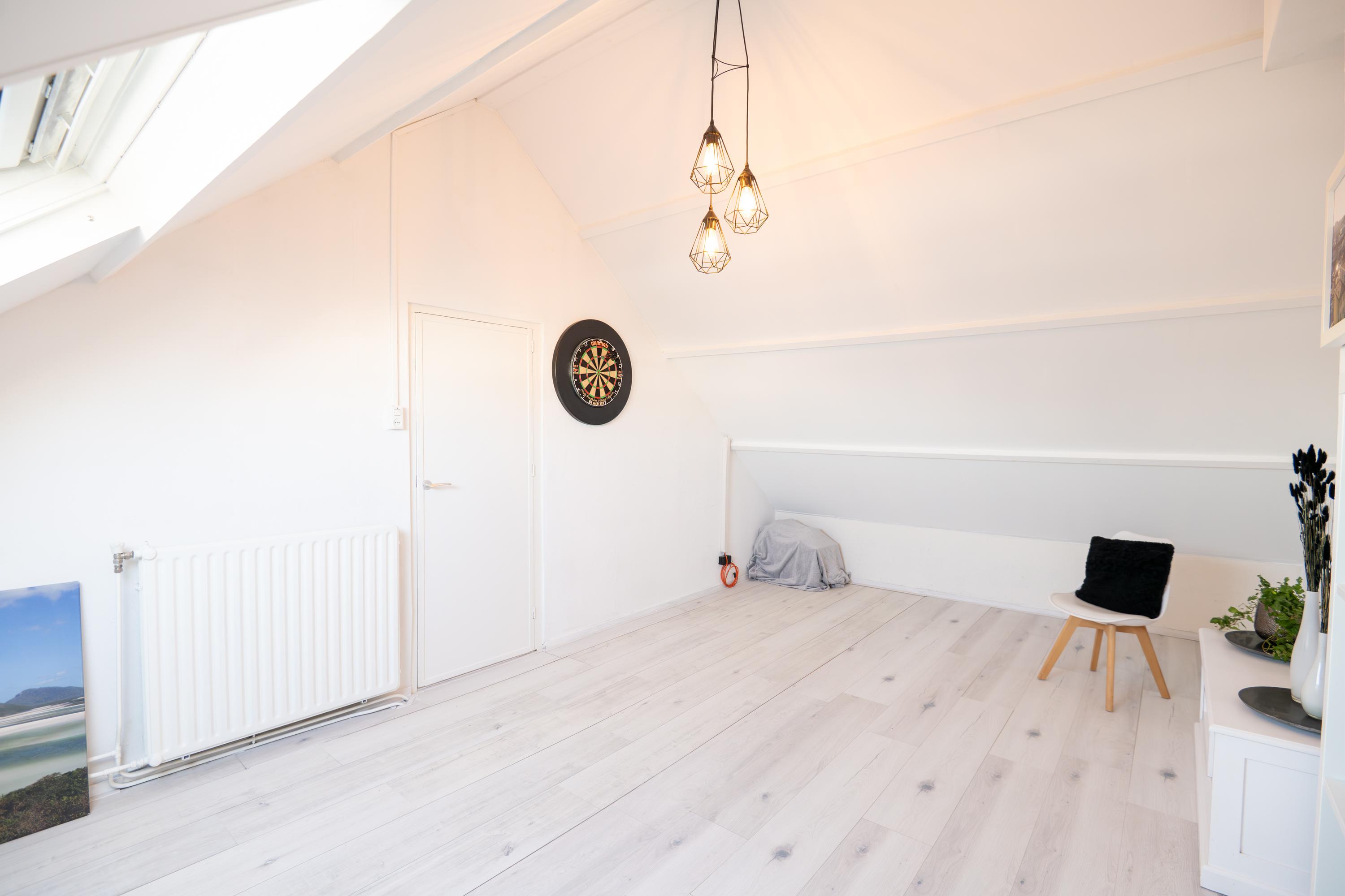 Deze ruime eengezinswoning is modern ingericht en biedt veel leefruimte. De grote schuifpui achterin zorgt voor extra lichtinval en een open verbinding naar de achtertuin. De open keuken heeft een praktische U-opstelling en een sfeervolle open haard tussen de eethoek en zithoek. Op de eerste verdieping is de indeling veranderd; de moderne badkamer met inloopdouche en ligbad is nu groter, en er is een extra toilet en inloopkast gerealiseerd. De woning beschikt over drie slaapkamers en een lichte zolderkamer. In de diepe achtertuin staat een berging met overkapping, en er is vrij uitzicht. Gelegen in een kindvriendelijke wijk met voorzieningen dichtbij, is dit huis perfect voor gezinnen.