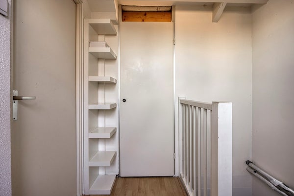 Overloop met toegang tot de slaapkamers, de badkamer en de trap naar zolderverdieping.