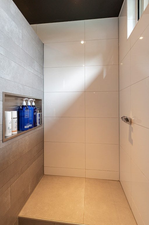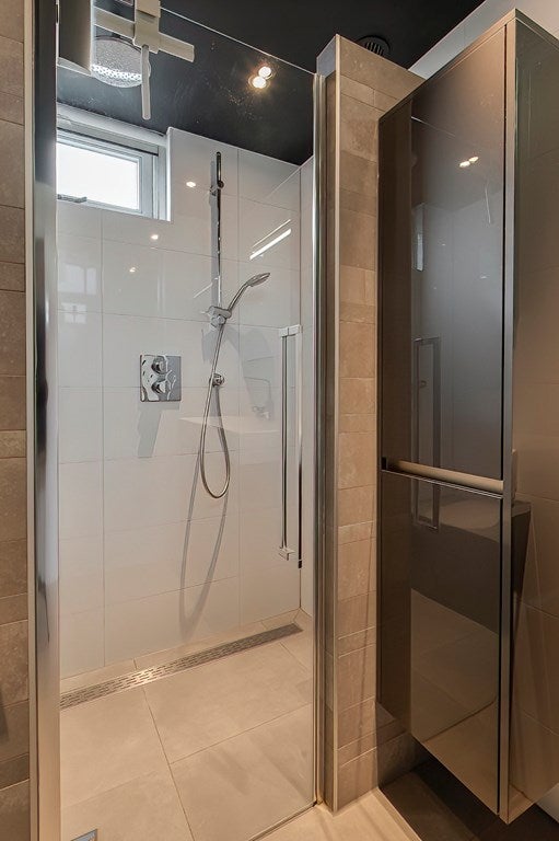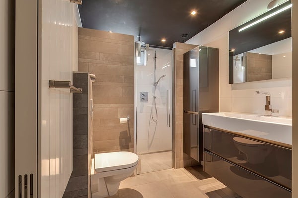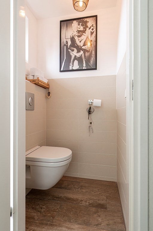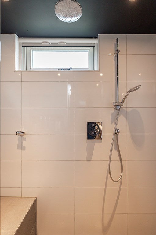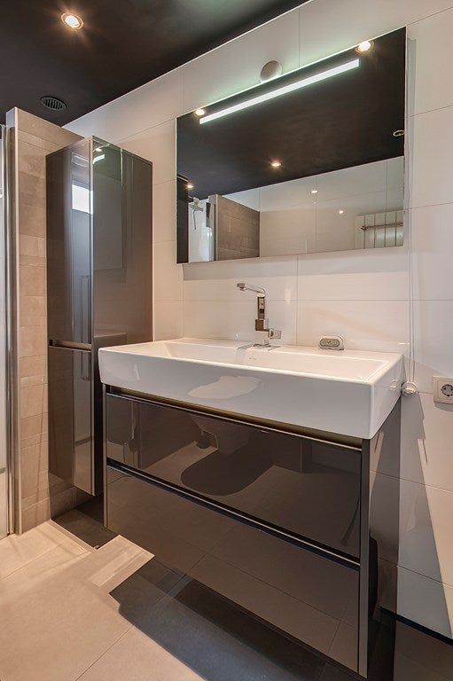 De luxe badkamer is eigentijds afgewerkt met een inloopdouche met glazen wand en hemeldouche, een tweede toilet en een breed wastafelmeubel. Natuurlijk is hier een mechanische ventilatie en een designradiator.