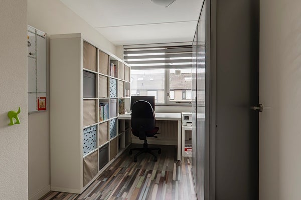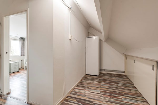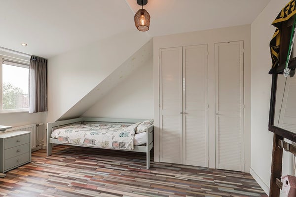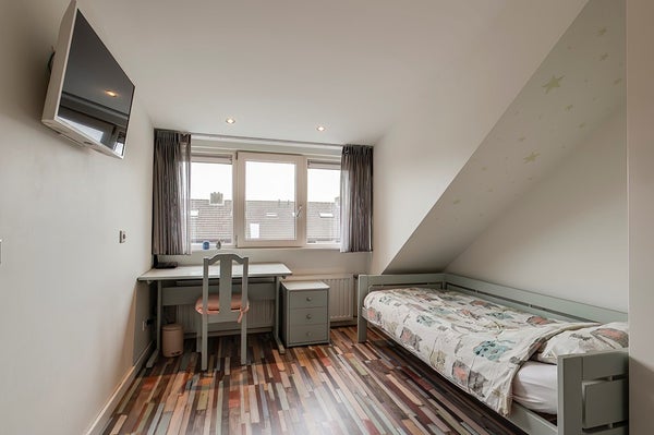 De tweede verdieping is ingedeeld met een voorzolder en een ruime vierde slaapkamer met vaste kast en dakkapel (kunststof / bouwjaar 2019). Deze slaapkamer is goed aan de maat met zo’n 12 m2 en kan zelfs nog ruimer worden gemaakt indien gewenst.