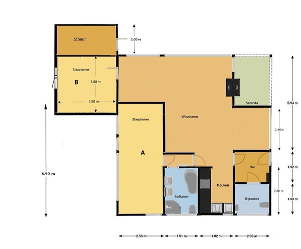 - De vrijstaande woning heeft een woonoppervlakte van 92 m² en beschikt over 4 kamers, waarvan 2 slaapkamers;
