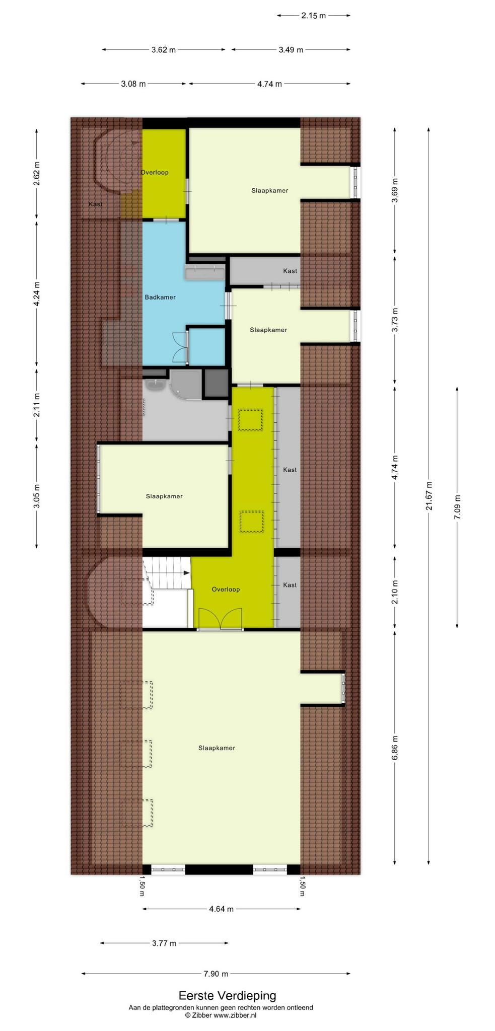 - De tussenwoning heeft een woonoppervlakte van 382 m² en beschikt over 12 kamers, waarvan 3 slaapkamers;