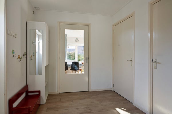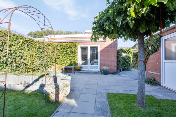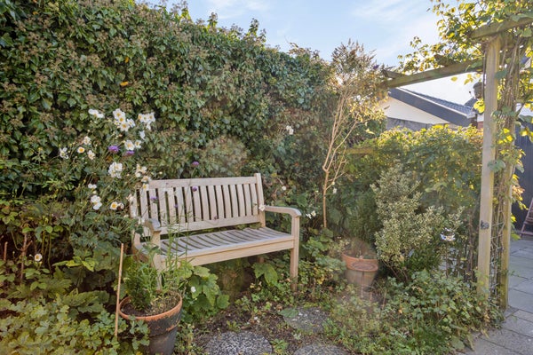 De lichte doorzonwoonkamer met gezellige schouw leidt naar de keuken, uitgerust met moderne apparatuur. Een praktische bijkeuken met toegang tot de badkamer en bedrijfsruimte maakt het geheel compleet. De groene achtertuin garandeert privacy en de ruime voortuin biedt plek voor meerdere auto's.