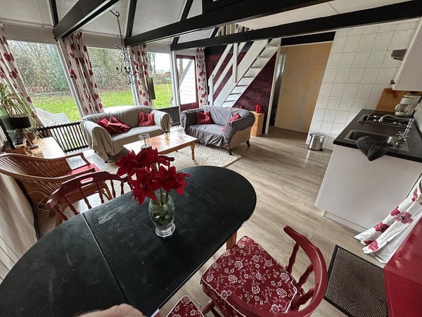 Mooi gelegen recreatie bungalow met woonkamer, open keuken met aanbouwkeuken, badkamer met douche en toilet, drie slaapkamers, op ruim perceel met panoramisch uitzicht over omgeving op bungalowpark aan de Kruinweg in Simpelveld.