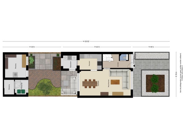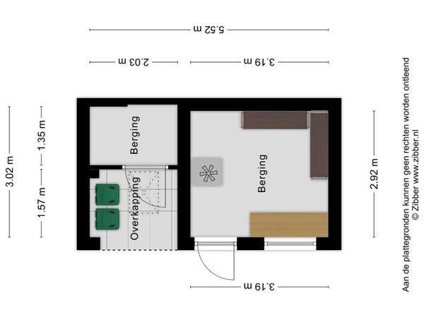 - Aanwezig (54 m², gelegen op het zuidwesten)