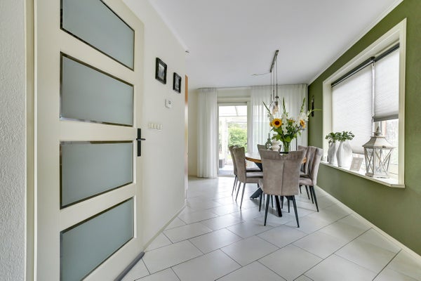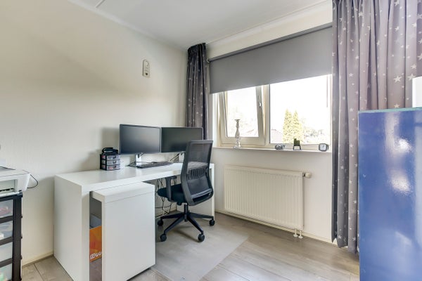 Bij binnenkomst komt u in de hal met een toilet en meterkast. De lichte woonkamer is vergroot met een erker en heeft een schuifpui naar de tuin. De halfopen keuken is voorzien van moderne apparatuur. Op de eerste verdieping zijn er drie slaapkamers en een ruime badkamer met inloopdouche en ligbad. De tweede verdieping heeft een vierde slaapkamer en zolderberging.