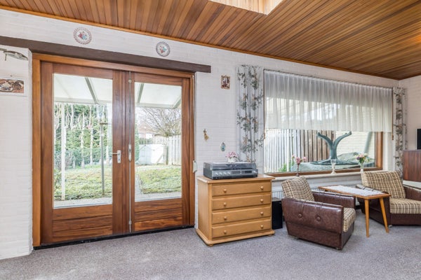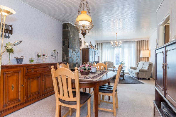 De woonkamer is riant van opzet en biedt volop indelingsmogelijkheden. De directe verbinding met de tuinkamer – thans ingericht als eetkamer – zorgt voor een prachtige lichtinval en een aangenaam tuincontact. Dit is zo’n plek waar binnen en buiten elkaar versterken. Waar lange avonden tafelen vanzelfsprekend worden.