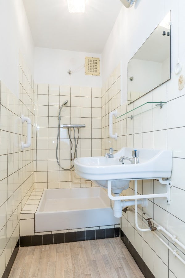 De doucheruimte is eenvoudig uitgevoerd en biedt volop mogelijkheden om deze naar eigen smaak te moderniseren.