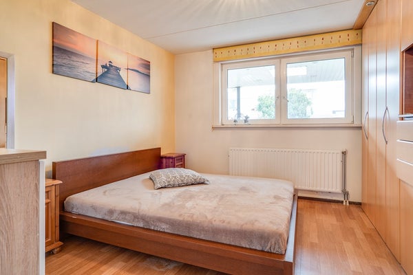 De ouderslaapkamer bevindt zich op de begane grond en beschikt over een vaste garderobekast. Aansluitend treft u de recent gemoderniseerde badkamer met inloopdouche, vaste wastafel met badmeubel, designradiator en spiegel.