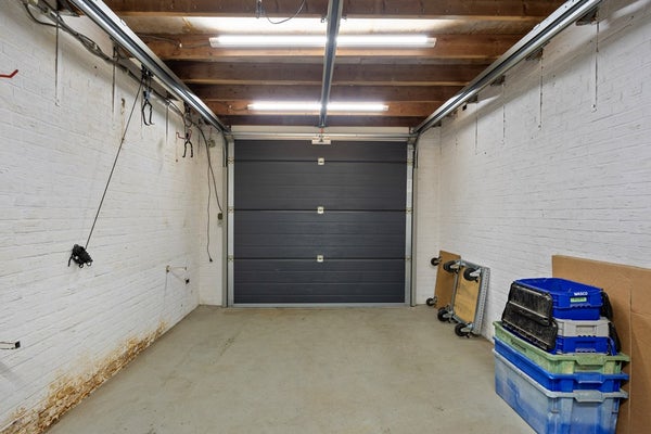 De nette tuin loopt aan 3 zijden rond de woning waar u de achtertuin kunt betreden via de poort aan de zijkant, de garage of de serre. De tui is ingericht met mooie sierbestrating, grote plantenborders, robuuste schuttingen en een grote garage. De garage is voorzien van een elektrische roldeur, verlichting en een werkbank. U vindt hier veel ruimte voor het bergen van uw gereedschap, het speelgoed van de kinderen en al uw rijwielen.