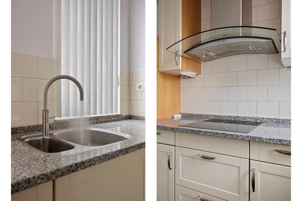De fijne lichte woonkamer is afgewerkt met strakke wanden en plafonds en de gehele begane grond is voorzien va een robuuste leisteen vloer. Achter in de woonkamer is ruim plaats voor een grote lounge van waar u mooi zicht heeft op de fraaie achtertuin. Ook stapt u hier de glazen serre in, een heerlijke bonusruimte waar u gebruik va kunt maken in alle seizoenen van het jaar. Aan de voorzijde vindt u de keuken welke geplaatst is in een hoekopstelling. De keuken is uitgevoerd in een landelijke stijl met recent vernieuwde appratuur, veel werk- en bergruimte e een granieten werkblad. Naast de keuken heeft u voldoende ruimte voor een grote eethoek.