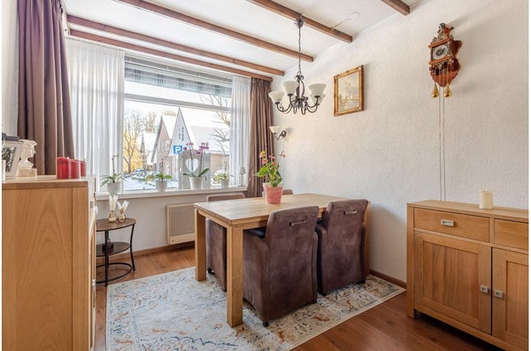 In deze charmante jaren ‘30 woning heeft de vorige eigenaar tientallen jaren met plezier gewoond. Nu is het tijd voor een nieuwe bewoner om het stokje over te dragen. De goed onderhouden woning biedt volop mogelijkheden om deze naar eigen smaak aan te passen. Bij binnenkomst zie je de hal met de meterkast, die leidt naar de woonkamer, waar de gashaard zorgt voor warmte en sfeer. Een erker aan de voorkant zorgt voor veel lichtinval.